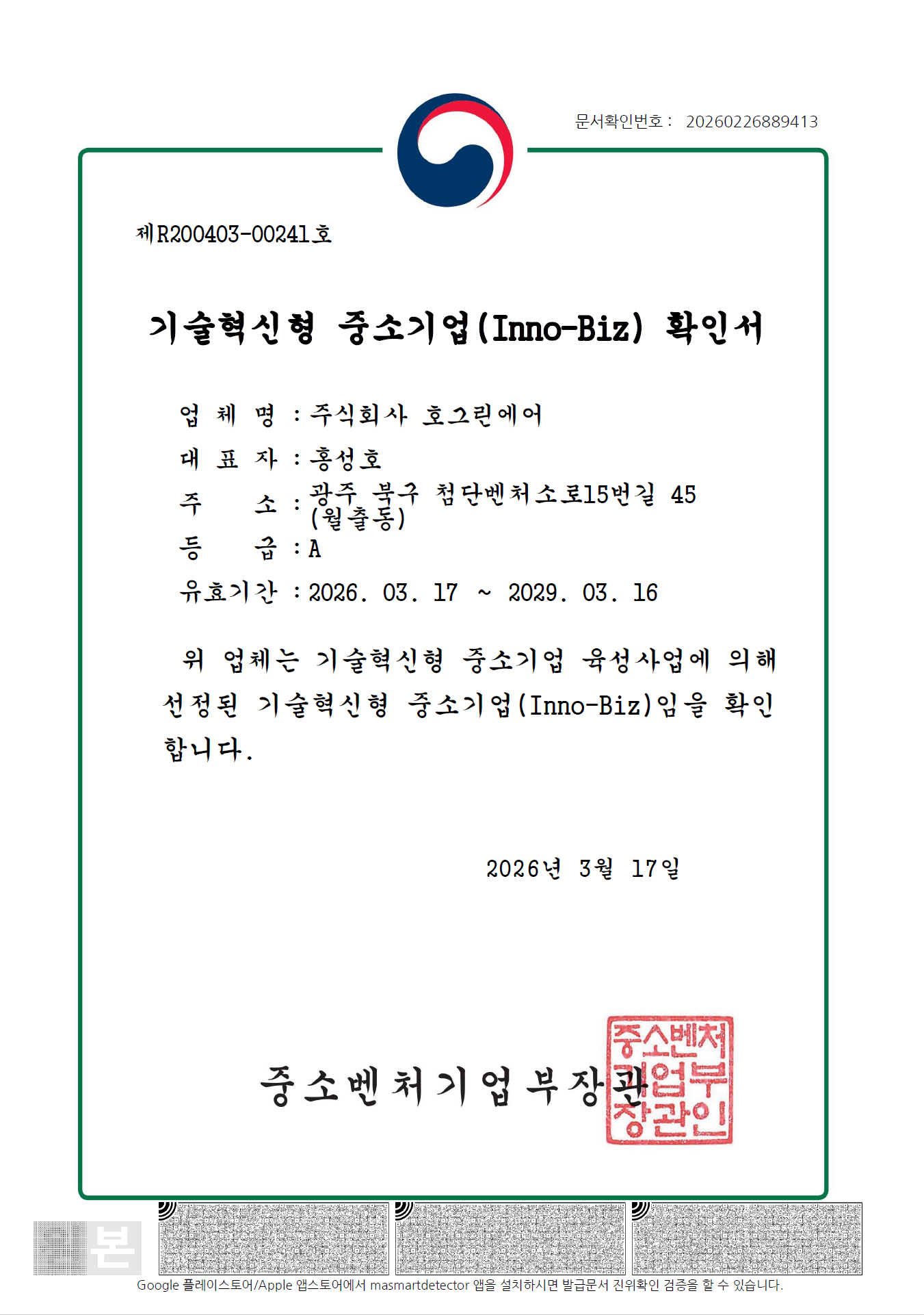 특허증 및 인증서 특허증 인증서 기술혁신형 중소기업(Inno-Biz) 확인서 2026.03.17 2025 ESG 우수기업 인증서 2025.04.10 2025 기술평가 등급확인서 T-2 (주식회사 나이스디앤비) 2025.04.21 경영혁신형 중소기업(Main-Biz)확인서 2023.09.15 기술혁신형 중소기업(Inno-Biz)확인서 2023.03.07 벤처기업확인서 2025 2025.05.07 수소용품 제조사업 허가증 2025.09.11 수소전문기업 확인서 2023.12.22 지역특화 프로젝트 레전드 50+ 선정확인서 2024.12.17 프리(PRE)-명품강소기업 지정 2023.10.01 기술역량 우수기업 2023.04.13 디자인혁신유망기업 2023.09.21 경영혁신형 중소기업 Main-Biz 2023.09.15 ESG우수기업인증서 2022.12.23 이노비즈 인증서 2022.05.25 벤처기업확인서 2022.04.27 [투자협약서] 신재생에너지 동력시스템 및 무인항공기 제조 2022.01.12 기술역량 인증서 국문 2021.04.19 ITS 소프트웨어(드론)의 개발 인증서 2021.03.09 [HG-G2400] 적합등록필증 2021.03.08 가족친화인증서 2020.12.01 [HG-G0800] 적합등록필증 2020.11.16 경영혁신형 중소기업(Main-Biz) 확인서 2020.08.31 기술혁신형 중소기업(Inno-Biz) 확인서 2020.03.17 기업부설연구소 인정서 2019.08.26 소프트웨어 품질 인증 2018.07.05 ISO9001최초인증서 2018.03.22 글로벌IP스타기업지정확인서 2018.03.19 직접생산확인증명서 2018.02.05 K-Global 300 인증서 2017.12.29 국방벤처협약기업확인서 2017.12.28 산학연협력기술개발사업주관기업지정서 2017.12.01 퍼스트펭귄형창업기업 2017.09.27 ISASI 회원증 - 조선대 산학협력 협약서 -