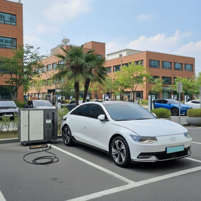 This is a 7 kW-class hydrogen fuel cell power generation system based on PEMFC (Proton Exchange Membrane Fuel Cell) technology. The system is designed for outdoor power generation and can also be utilized as an EV charging power source, providing flexible and reliable off-grid energy supply.